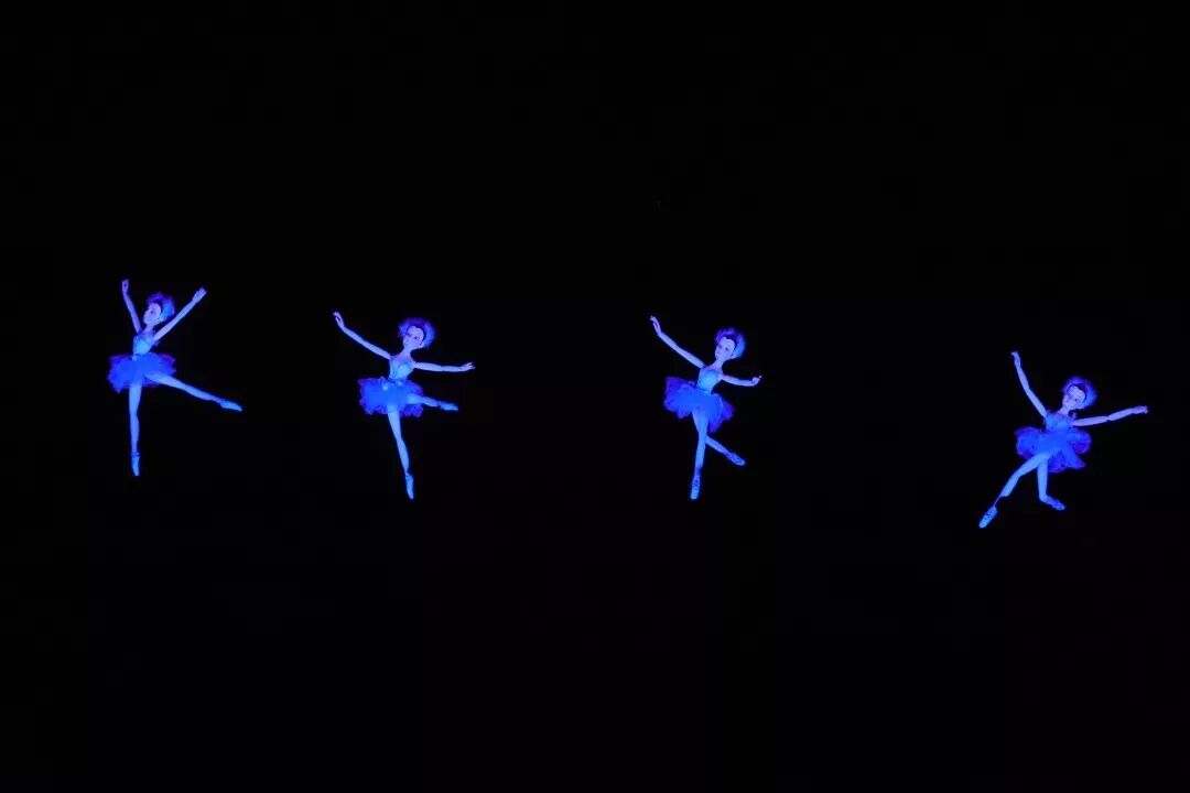 木偶《芭蕾小天鹅》改编自芭蕾经典名剧《天鹅湖》。节目伊始灯光落下,营造出无边的黑暗,蓝色小精灵们接着跳跃而出,那翩翩舞姿突然让人明白,原来纯色的黑暗不是黑暗,而是澄澈的天鹅湖水,温柔的湖水将小天鹅们包裹起来,托举起来,让她们告别束缚,自由自在的起舞翱翔。节目结束灯光亮起,照见小精灵身下的3双巧手,让人感叹艺术之美的来之不易。