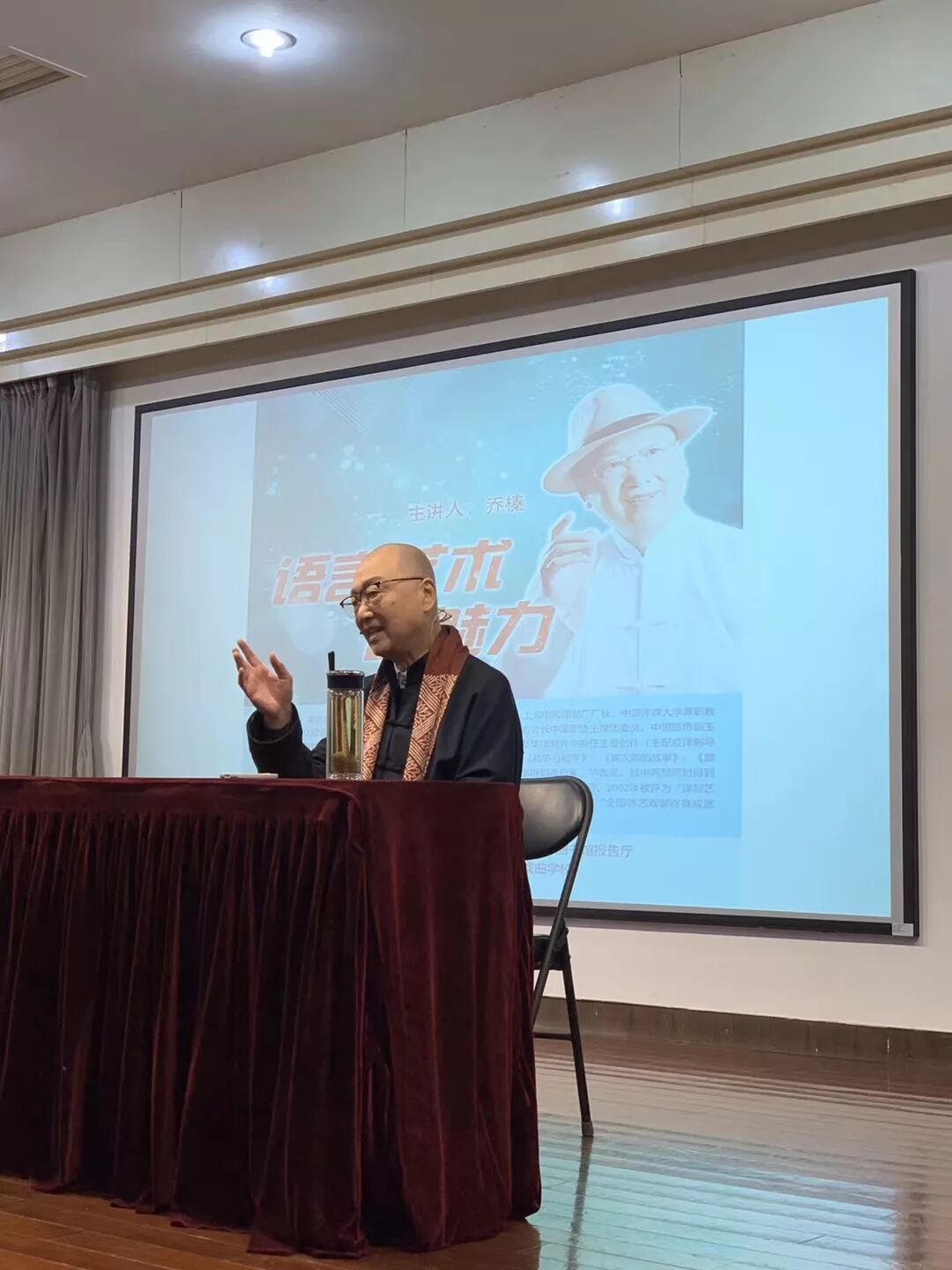 2019年11月1日周五下午,教师的学习活动“百花齐放、百家争鸣”。在图书馆报告厅由木偶教研室主办的《语言艺术的魅力》,诚邀了我国著名的表演艺术家,国家一级演员,全国德艺双馨终身成就奖、华语朗读终身成就奖的乔榛教授为师生们带来了精彩的讲座。