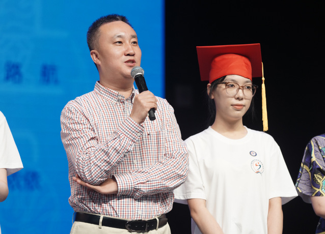 校长、党总支副书记张军在毕业典礼上发表了题为《专注逐梦,转折领航,传承希望》的演讲。在讲话中,张军校长代表学校为2025届全体毕业生致以最热烈的祝贺,对同学们在学校的卓越表现给予了高度评价。他以今年高考作文题“专、转、传”为引,指出无论是昆剧班寒暑不辍的苦练、戏曲音乐班对音符的精雕细琢、木偶班赋予木偶以灵动的生命力,还是音乐剧班对作品的精细打磨、话剧影视班与美术班为艺术之路打下坚实基础,无不彰显着“专”注的力量,以专业的态度铸就属于自己的艺术丰碑。他强调,毕业是人生关键的“转”折点,勉励大家勇敢迎接角色转变与挑战,在人生舞台上绽放成熟的光彩。同时,他深情寄语毕业生肩负起文化“传”承的使命,以卓越的艺术展现中华文化之美。