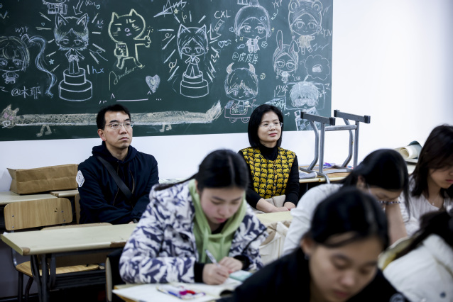 在教导科科长李美的引导下,家长们走进校园,开启了一段沉浸式的探访之旅。大家依次全景观摩了我校专业课堂,家长们步入教室,近距离目睹了孩子们在专业学习中的专注与投入。课堂上,老师们悉心指导每个动作细节,学生们则一丝不苟地反复练习。亲子同上一堂课的环节更是洋溢着温情,家长们纷纷走进自己孩子的课堂,亲临其境随堂聆听,以“同学”的心态,深度观察,沉浸体验。