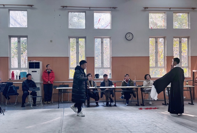 巡考组首先来到教学楼205教室,对2025级沪剧表演专业“念白”科目考试进行巡视。张军校长现场察看了学生的专业表现,并与专业教师就课程教学实施情况进行交流。他指出,念白是戏曲表演的重要基础,教学过程中必须注重语言规范与舞台表现力的有机结合,为学生专业发展夯实根基。