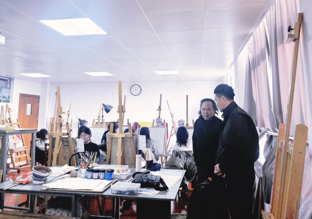 随后,巡考组在606、608教室对2025级艺术设计与制作专业“素描静物”考试进行了查看,重点关注学生创作过程与考核标准执行情况,并与主考教师马青、孙志奎围绕课程设置、教学组织与考核评价进行了交流。