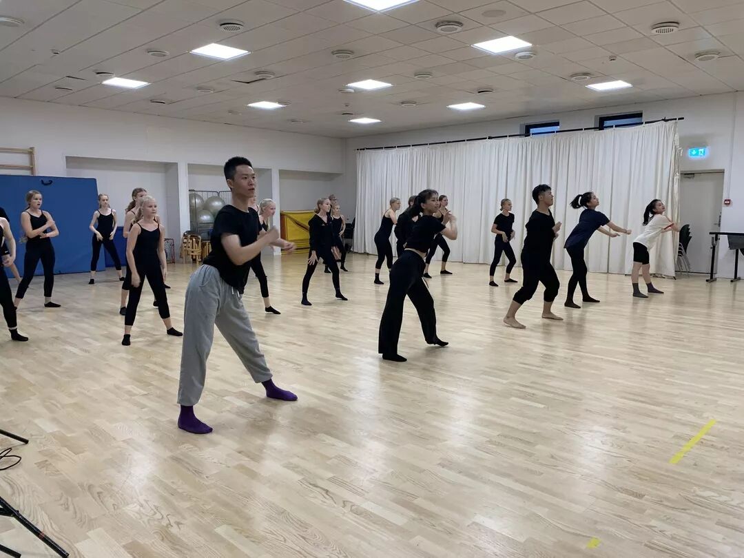 后面几天,我们和丹麦的学生一起上课,接触了不同种类的课程,有现代舞、丁舞、芭蕾舞等还有拓展的英语课和音乐课。舞蹈课的内容很出乎意料,以往都是老师教什么跳什么,这里会有分组即兴发挥,编排等等。拉丁舞是我们在学校没有接触的舞种,在老师的带领下,不断尝试也有了新的突破。上课的氛围从头到尾都激情澎湃,有单人舞、双人舞以及围圈集体舞,每个人都很投入,一堂课下来满身大汗却一点不觉得累。
