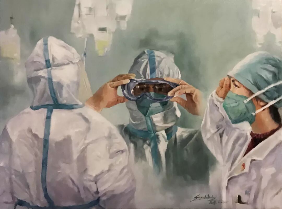 戏校人与疫情重灾区人民心手相连,团结一心。我们积极投身艺术创作,以艺战“疫”。我校美术教师孙志奎,用自己的画笔为奋战在抗击疫情第一线的工作人员加油鼓劲,践行自己庄严的承诺,众志成城抗疫情。