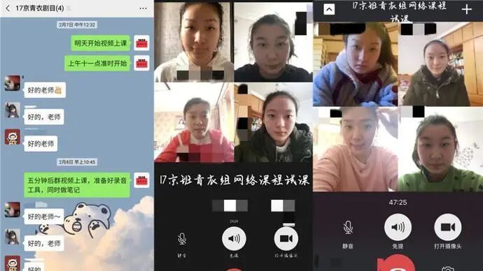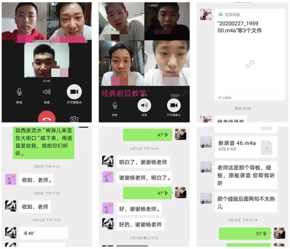 网上教京剧,有没有可能?老师们早已想好对策。京剧教研室老师石晓珺制定了“录音和视频”两步走的教学模式。学生在上课前已对所学剧目进行预习,课前将唱念以录音形式回课,石晓珺将每个学生录音里的问题用纸笔记录下来,课上针对“节奏、气口、行腔及语气”逐个讲解,并要求学生记录学习心得和所遇到的问题,起到及时纠正、加强记忆的教学目的。经过网上试运行,教学效果超出石晓珺预期,她认为这是一次“被动而成功”的尝试,打破了固有的教学模式,打开了新的教学思路,开拓了她在不同领域的教学认知。另一位京剧专业老师杨淼提前为相应班级的学生集中建立微信群,给学生布置寒假作业及预习内容,组织学生观看相应的学习视频,定期检查学生的寒假作业及预习情况,再一一纠正。有了这样充分教学铺垫,为第一课打下良好的基础。