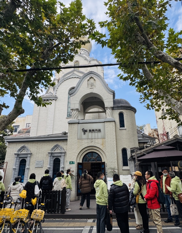 行走队伍随后途经思南书局诗歌店,在由圣尼古拉斯教堂优雅转身而成的阅读空间里,会员们体会到传统与现代、神圣与日常在上海街头的奇妙交融。走出书局,大家还依次造访了孙中山故居、周公馆和梅兰芳故居。红色历史的铿锵足迹与伟人大师的流风遗韵交织在这片街区,形成一条兼具革命基因和人文底蕴的行走脉络。在红色记忆与海派风情的载体中,活动参与者深度体验了海派文化的肌理和温度,深情阅读了这座城市多层次的历史叙事。
