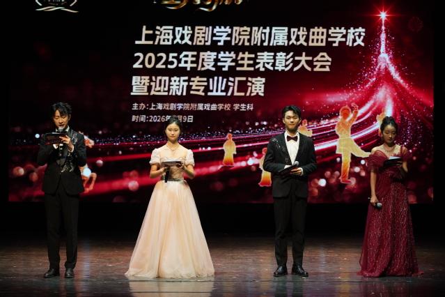 1月9日午间,上海戏剧学院附属戏曲学校隆重举行“春晓梨园,星光引航”2025年度学生表彰大会暨迎新专业汇演。我校党总支书记王绚,党总支副书记、副校长王芳,副校长唐禾香,副校长陈俊杰,上海戏剧学院戏曲学院党总支书记徐莹,党总支副书记亓季松,梅陇镇街道相关领导,复旦大学附属儿科医院相关领导,家委会代表;我校教职工与各专业学生汇聚一堂,共同见证了这场集表彰、汇演、传承与展望于一体的校园文化盛典。
