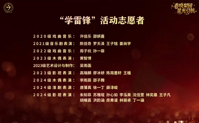 我校志愿者团队与学生会纪律管理部同学的感人事迹短片,呈现了他们在招生引导、升旗仪式保障、校园服务、文明督导等平凡岗位上的默默坚守与无私奉献。片中,志愿者与纪管部同学以高度责任感,于校园各个角落维护秩序、倡导文明,以实际行动践行“服务同学、奉献校园”的宗旨。这些看似平凡的付出,汇聚成了校园里最温暖的风景线,彰显了戏校学子不仅在艺术舞台上追求卓越,更在品德修养与责任担当方面展现出新时代青年的良好风貌,令在场师生无不感受到其中的温暖与力量。