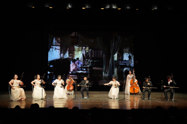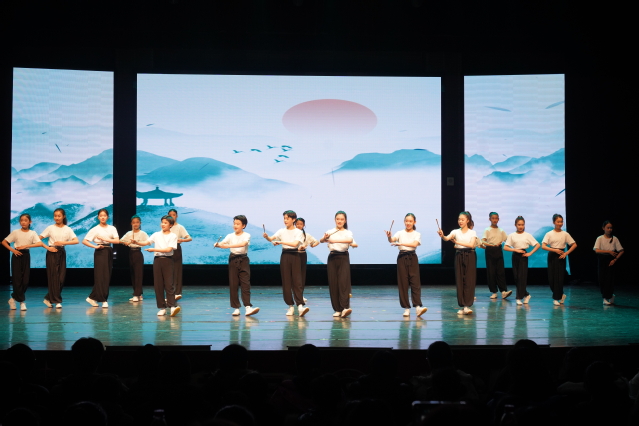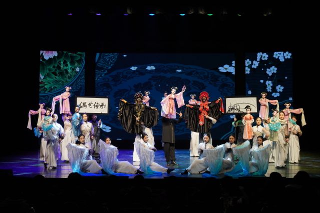 舞台上,各专业学子以精湛技艺共同谱写了一曲传统与青春交响的艺术诗篇。淮剧表演专业呈现的淮剧联唱《淮音绕梁》醇厚悠扬,展现淮剧的文化底蕴与鲜活传承;戏曲音乐专业带来的弦乐合奏《知否知否》,于弓弦交错之间,为流行旋律注入古典意蕴,展现出民乐在当代语境下的细腻探索。影视表演专业通过《库尔班大叔您上哪儿》,以活泼的表演唱形式,舞姿翩跹、情感真挚,传递出浓郁的民族风情与团结之情。沪剧专业推出的沪语小品《馬上新闻》,以生活化的表演形式和幽默诙谐的台词,展现戏曲艺术关照现实、呼应时代的生命力;艺术设计与制作专业与音乐剧专业携手呈现的服装秀《笔尖·霓裳》,将环保理念融汇于设计之中,以材料为语言、以步伐为韵律,完成从创意手稿至舞台华服的艺术转化。京剧表演专业带来京歌《咏梅》,以铿锵音韵与昂扬气度,在时代旋律中传承国粹精神,彰显戏曲人咏志抒怀的文化自信;越剧表演专业的流派联唱《流光溢彩》,则凭借婉转唱腔与典雅身段,一腔一调尽显江南戏曲的隽永风韵;木偶表演专业带来的《偶艺传承涌新人》,更以指尖巧艺操纵木偶灵动起舞,生动诠释了非遗技艺在新时代的传承与创新。