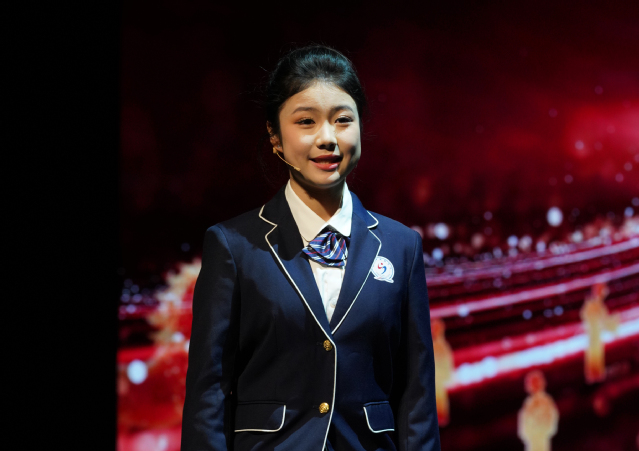 尤为动人的是,国家奖学金与上海市奖学金获得者的四位同学联袂呈现的情景朗诵。国家奖学金获得者:2021级京剧表演专业的杨牧潼同学以“台上一分钟,台下十年功”一语,道出了岁月坚守的厚重;上海市奖学金获得者:2021级音乐剧表演专业的张嘉琳同学坦言“艺术是刻在我青春里的热爱,是藏在我心底的信仰”;来自2021级戏曲音乐专业的傅文轩同学将荣誉喻为“行弓走板间一份沉甸甸的回响”;来自2024级话剧影视表演专业的鹿家琪同学则视其为“角色的人生里,又一场刚刚启幕的灯光”。四位同学真挚分享了他们深耕专业、淬炼文化的成长心路,生动诠释了“艺文兼修、德艺双馨”的追求,榜样的引领示范深深感染了在场师生。