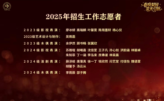 春风化雨,润物无声。我们相信,在这片“春晓梨园”的沃土上,今日闪耀的星光必将照亮更多前行的脚步。愿每一位戏校学子既怀揣艺术理想,亦恪守品德根基,在未来的岁月里,以青春之我、奋斗之我,传承文化薪火,勇担时代使命,在更广阔的人生舞台上,书写无愧于自我、无愧于学校、无愧于时代的璀璨篇章。
