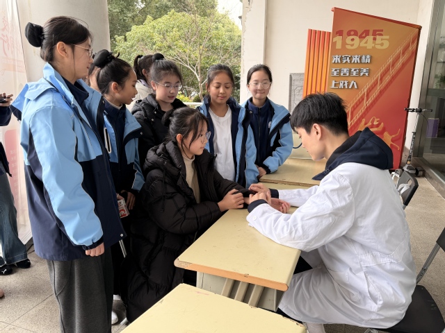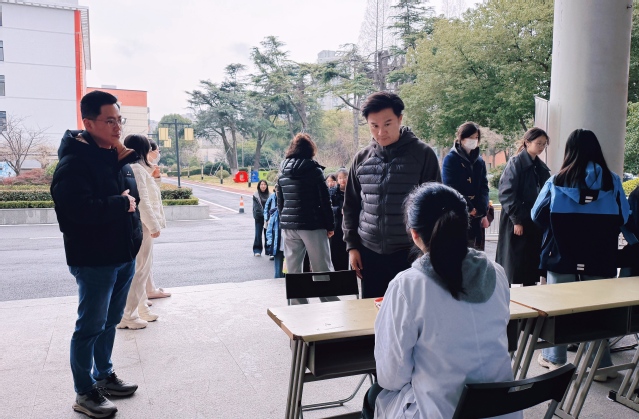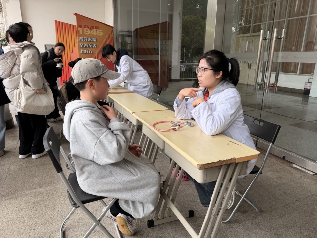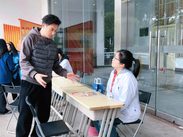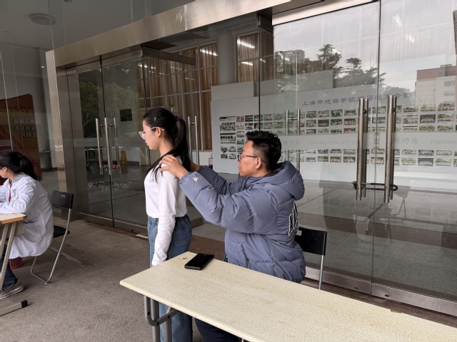 3月5日中午,春意渐浓的校园里涌动着一股特别的暖流。由复旦大学附属儿科医院骨科张志强医生、呼吸科王璐医生、中医科范腾医生组成的专家志愿团队来到我校,为全体师生开展健康义诊。活动伊始,义诊台前就排起了长队,师生们纷纷向专家描述自身的身体状况以及练功时遇到的小伤痛,并进行咨询。专家们耐心倾听、细致检查,给出了专业又暖心的建议。大家有序等候,现场处处洋溢着浓浓的温情。
